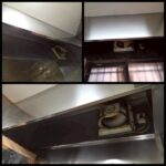 写真の通りフードはかなりでかく、フード内をピカピカにするには頭からすっぽり入り天井、壁面、油受けなどをお掃除しないといけません。