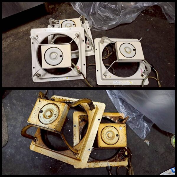 こちらのような店舗の業務用換気扇、一般家庭の換気扇どちらにも同じ事が言えるのですが、