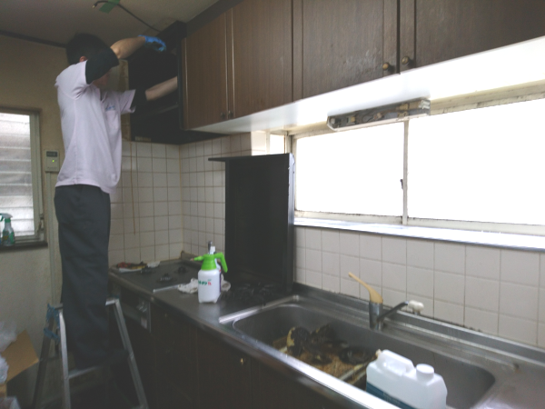 換気扇とキッチンセットですと、汚れ具合にもよりますが二人作業ですと平均2時間~5時間前後かかります。